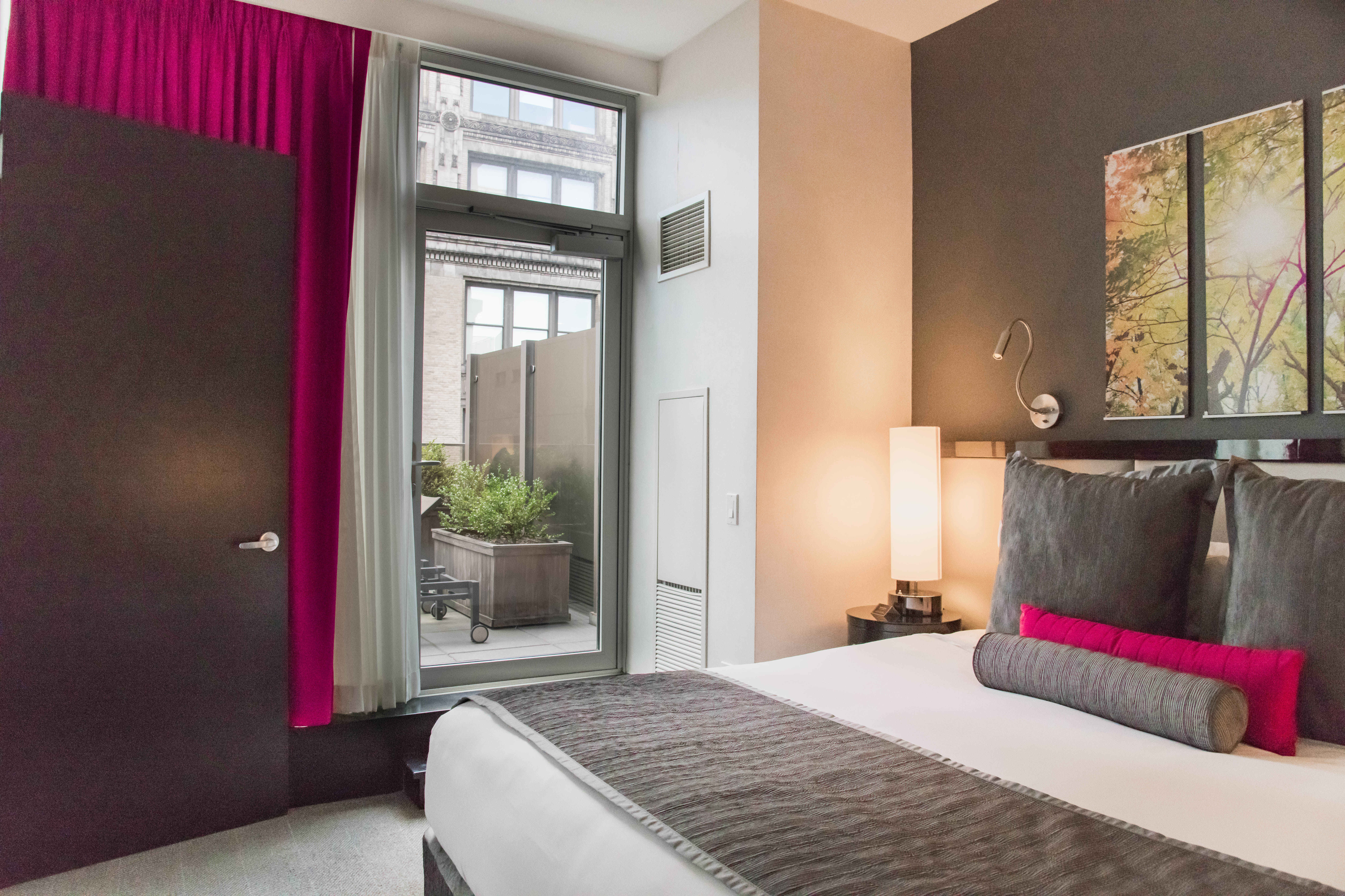 From the moment you enter this hotel, you are greeted by the wonderful Royalton staff who warmly welcome you for a perfect NYC stay. The lobby features a lofty open space with high ceilings and a regal finish. There are contemporary black and white designs throughout with rich pops of magenta and crimson giving the space a beautiful luxe appeal.