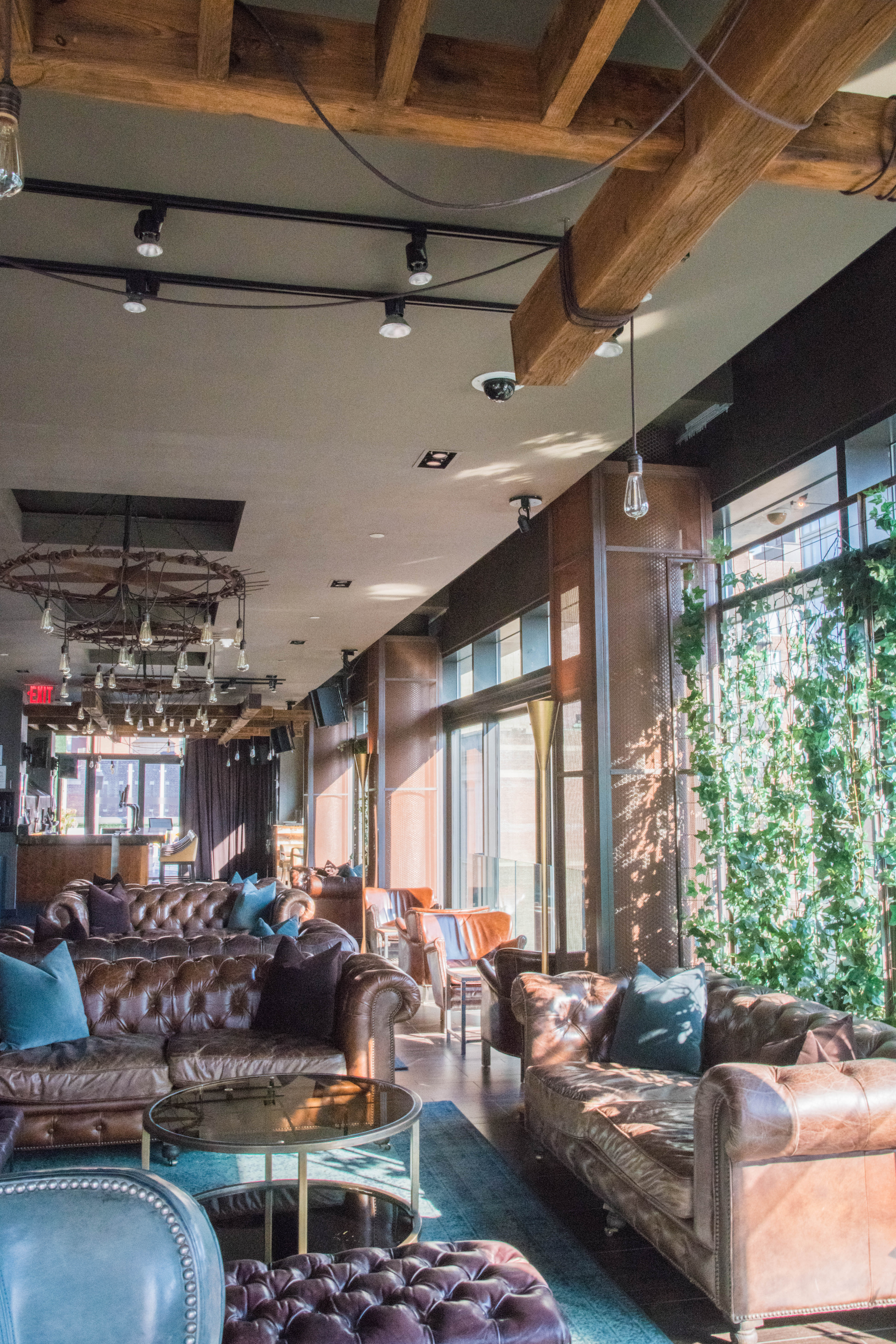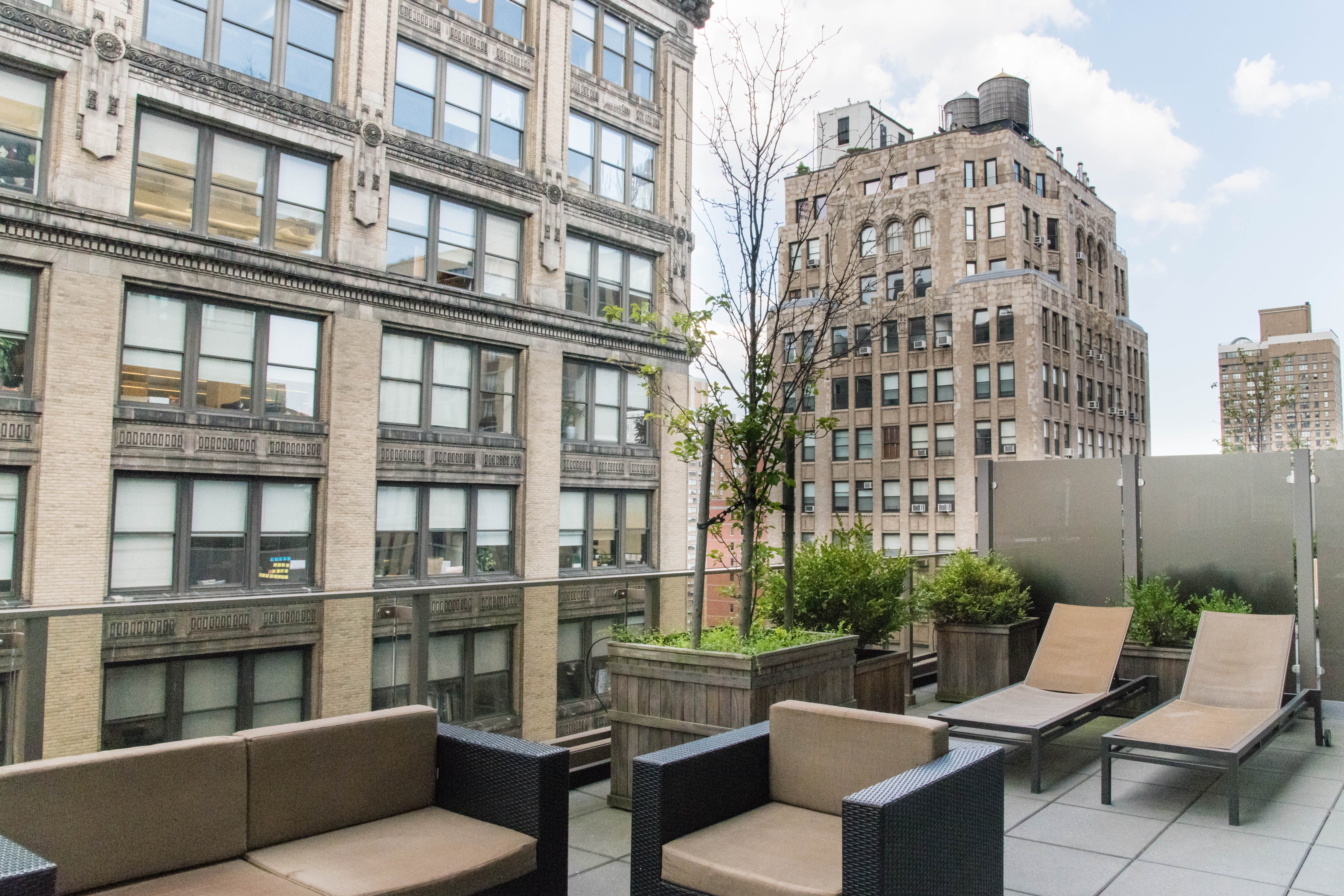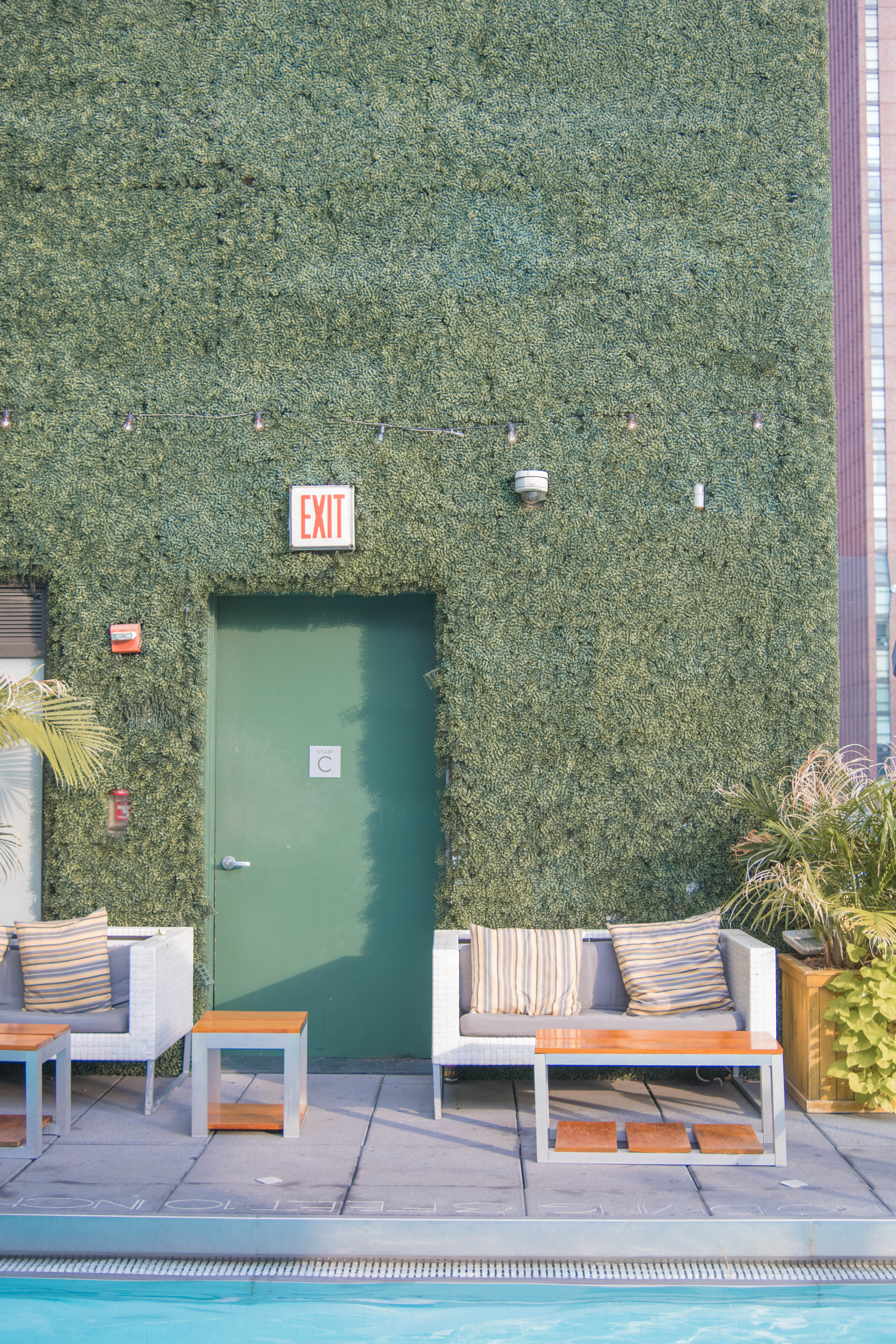 The second rooftop, located 2 stories above the pool deck, had a fun boathouse style vibe with white all furniture and grassy green walls. The Sundeck is full of sunshine and serves up panoramic views in all directions of Manhattan. Perfect for watching the sunset over the West of the city.