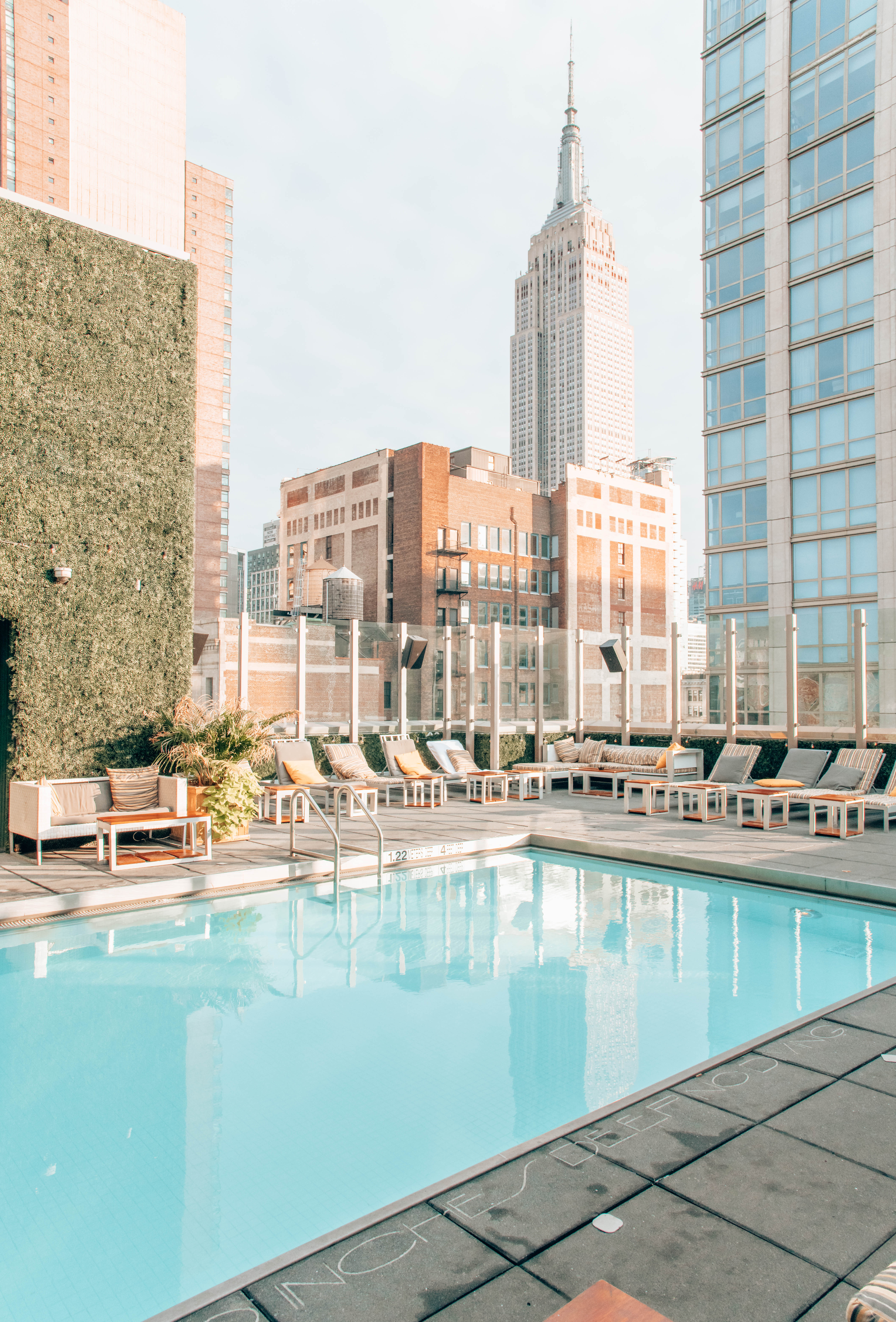 Hands down the best pool in Midtown! This pool has incredible views of the Empire State Building and one of the best vibes you will find in this area. Open only hotel guests, this pool is certainly a hot spot in the city drawing guests who just wish to access the pool.