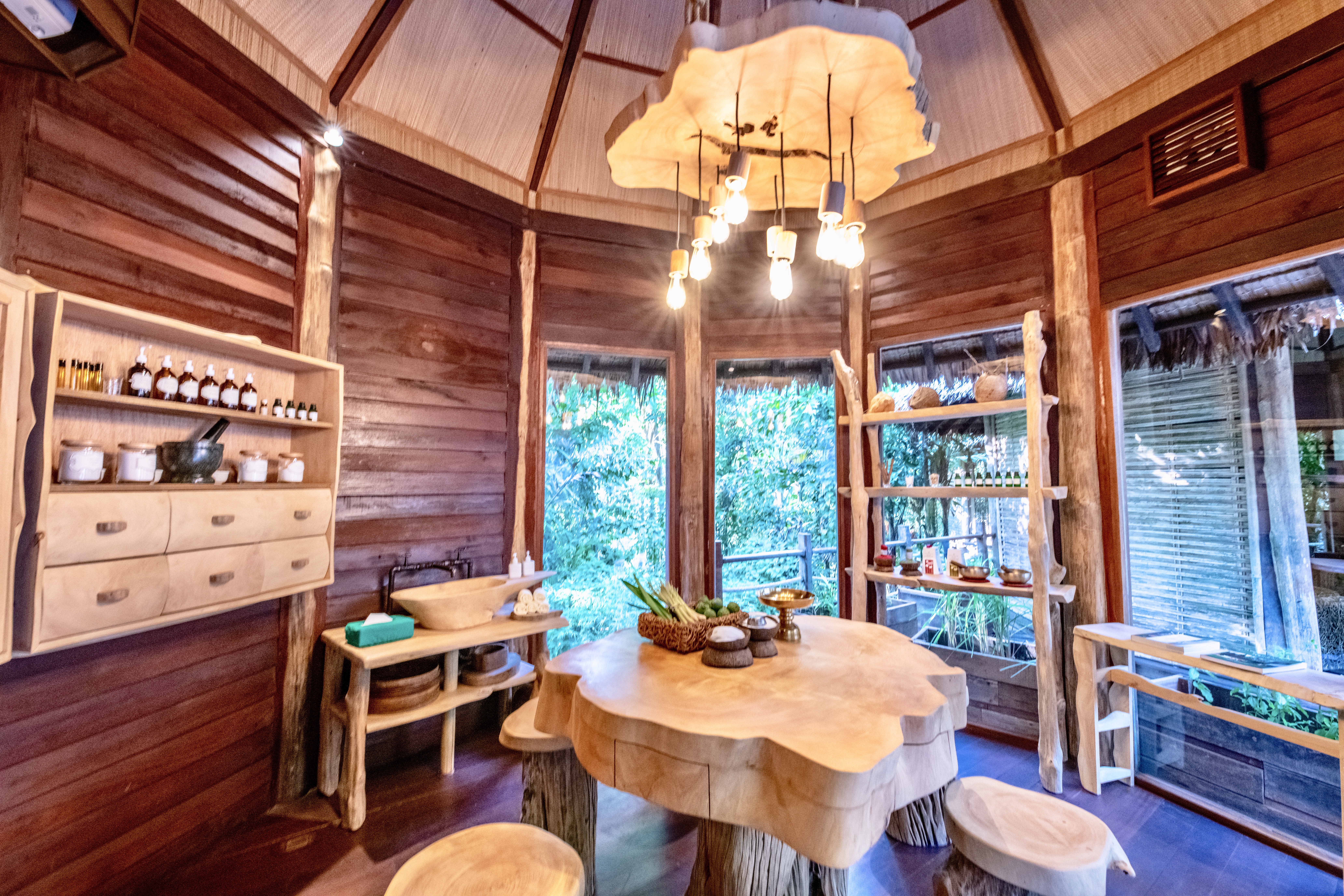 Next to the main reception area is a new area called the Alchemy Room. In this small wooden room, you can get the chance to work with a specialist to create an essential oil specific to your needs. They have all of the necessary ingredients and herbs to create your own signature potion whether for take home or for your treatment in the spa.