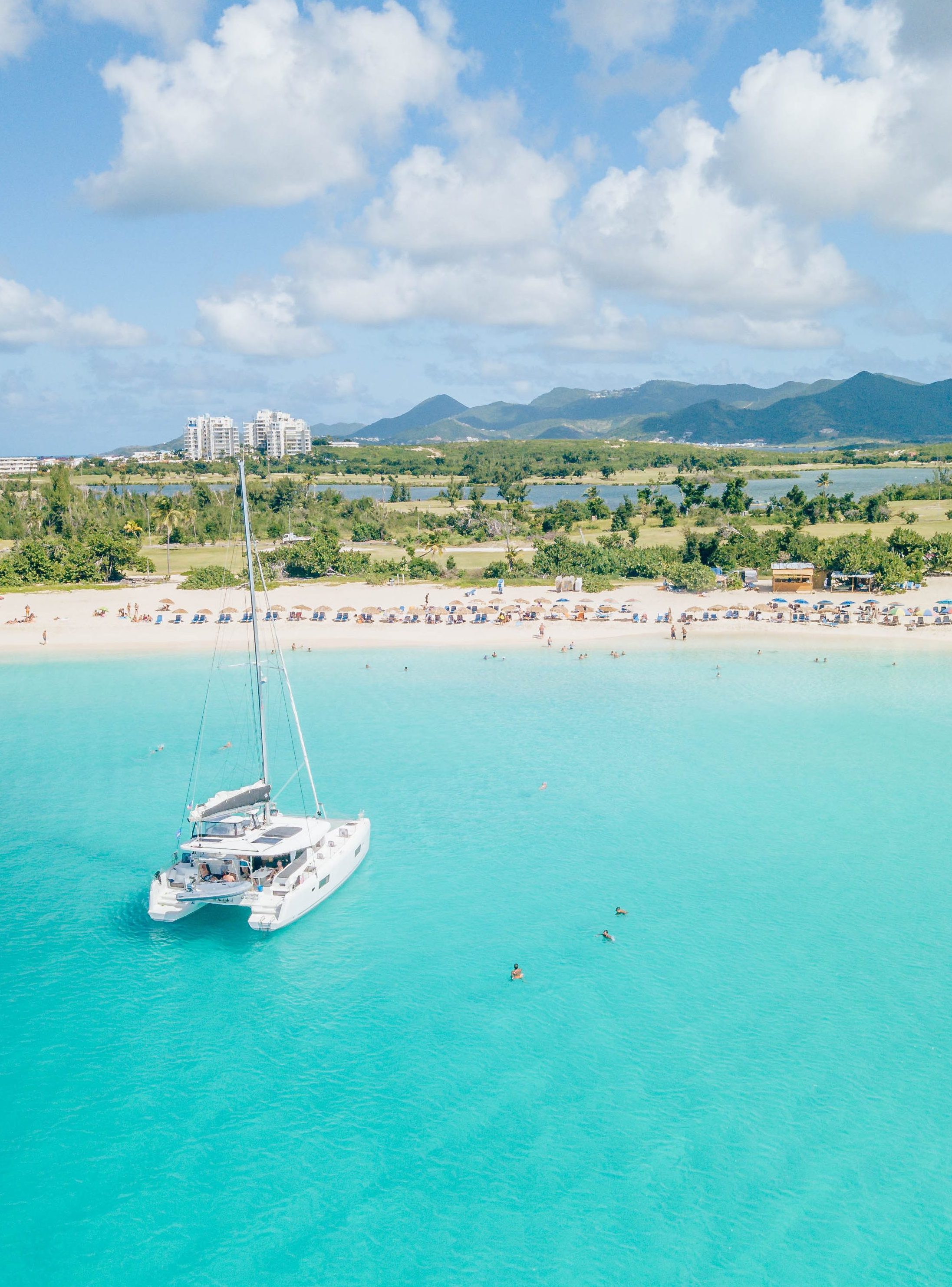 - the Dutch side is known for their stunning turquoise beaches and one of the best is Mullet Bay. Located close to Maho Beach, it is the quieter and bigger of the two. There are a couple local bars on the beach offering cold drinks and typical island cuisine. You can get a beach chair for $5 and enjoy the calm sparkling blue waters all day long. If touring the island by boat, make sure to make a stop in Mullet Bay